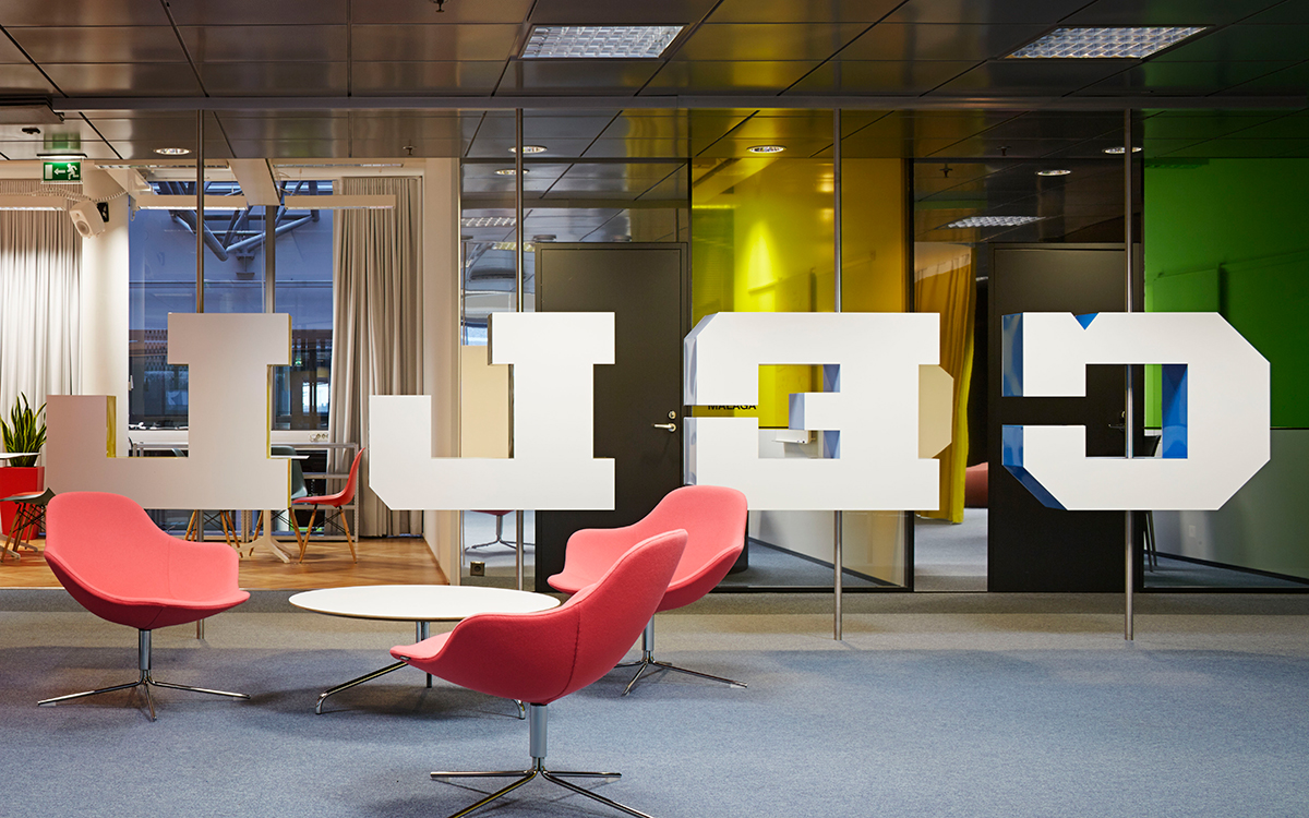 Paikasta ei voi erehtyä: jättimäiset Supercell-nimen muodostavat kirjaimet ottavat vastaan jo sisäänkäynnillä. Menestyksekäs peliyhtiö tarvitsi uudet työtilat, jotka toistaisivat brändi-ilmettä ja tukisivat yrityksen toimintaa sen pelisuunnittelun prosessien joka vaiheessa. Pelisuunnittelualan tilavaatimukset muuttuvat nopealla tahdilla ja projektien eri vaiheissa tarvitaan eri tavoin palvelevia tilallisia kokonaisuuksia. Voimakkaassa kasvussa olleelle yritykselle haluttiin innovatiivinen ja joustava toimistotilakokonaisuus, joka auttaisi keskittymään olennaiseen. Toimistoon suunniteltiin mutkattoman kommunikaation mahdollistamiseksi paljon avointa tilaa, erilaisia kokoustiloja ja keskiöön kahvilatila, joka kannustaa henkilökuntaa luonteviin kohtaamisiin. Ketterästi muokattavat tilat pysyvät mukana alan kiivaassa rytmissä ja kokonaisuus ruokkii luovuutta värikkyydellään.